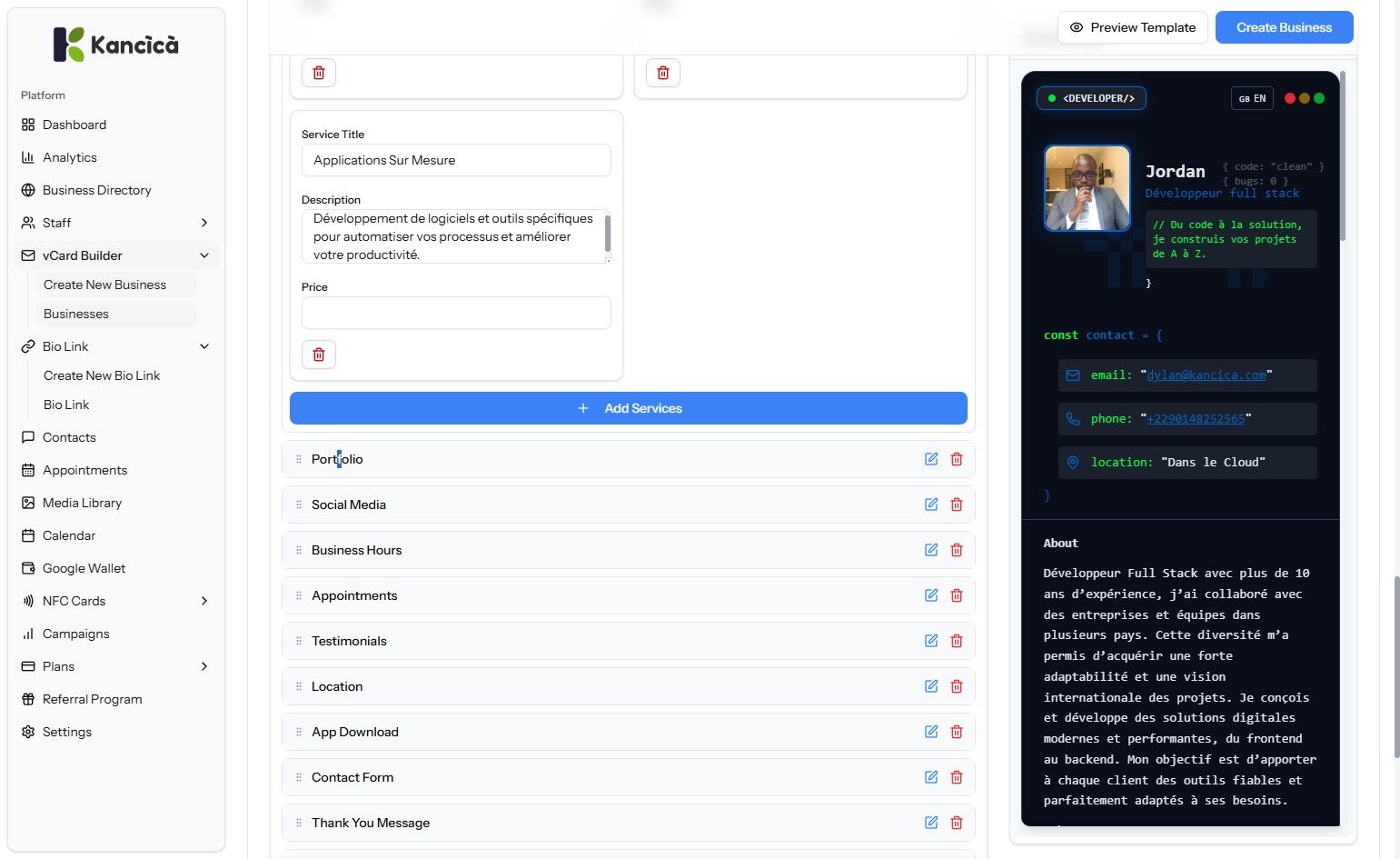 10. Ici on va se concentrer pour faire une carte de visite virtuel pour un Freelance dans le domaine du Développent Web.